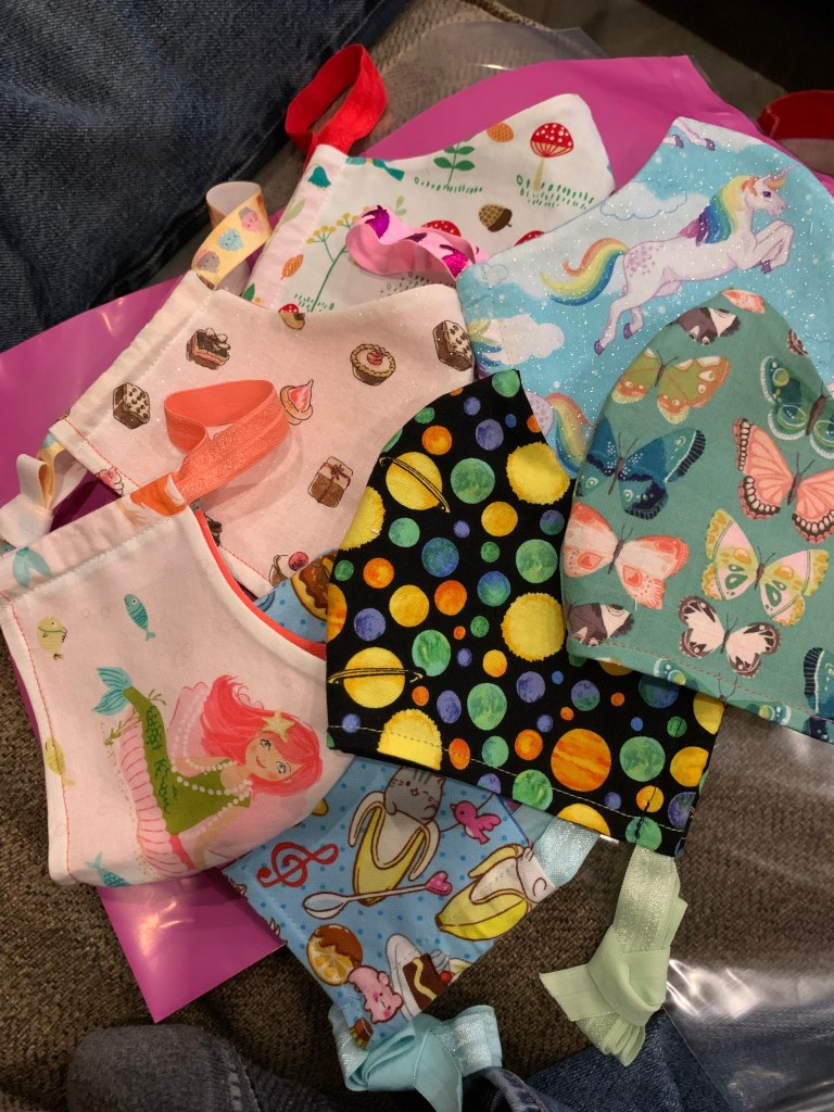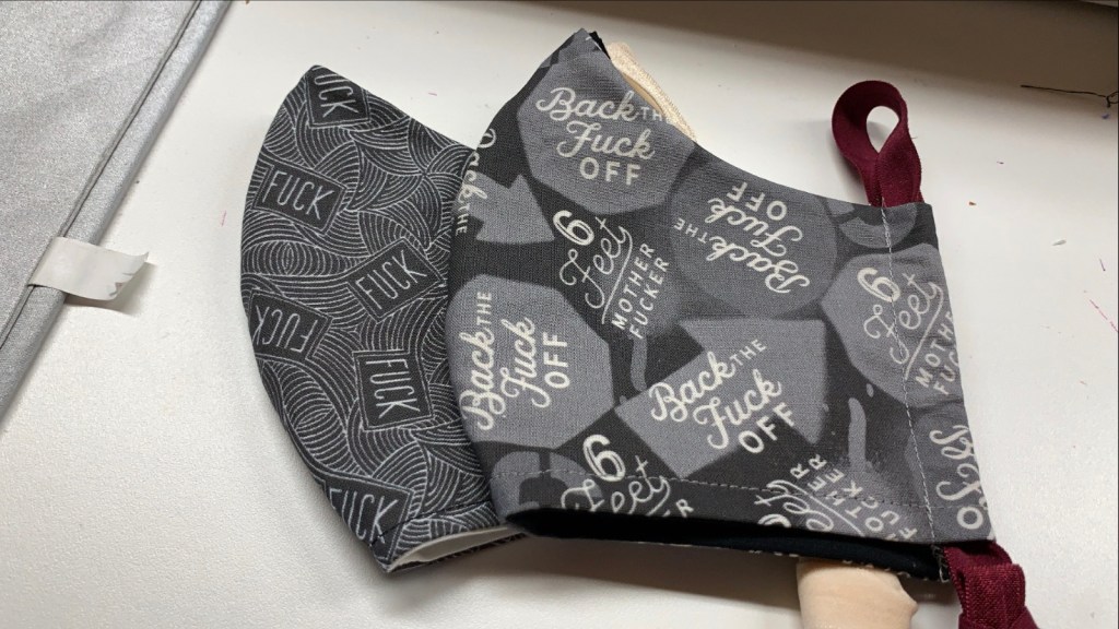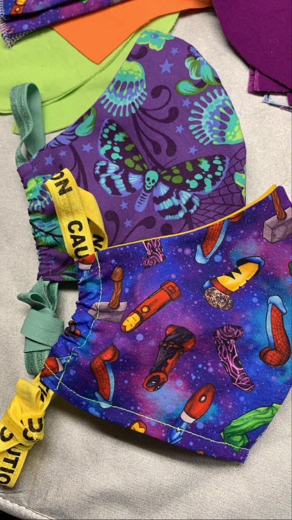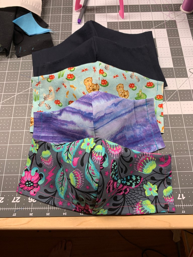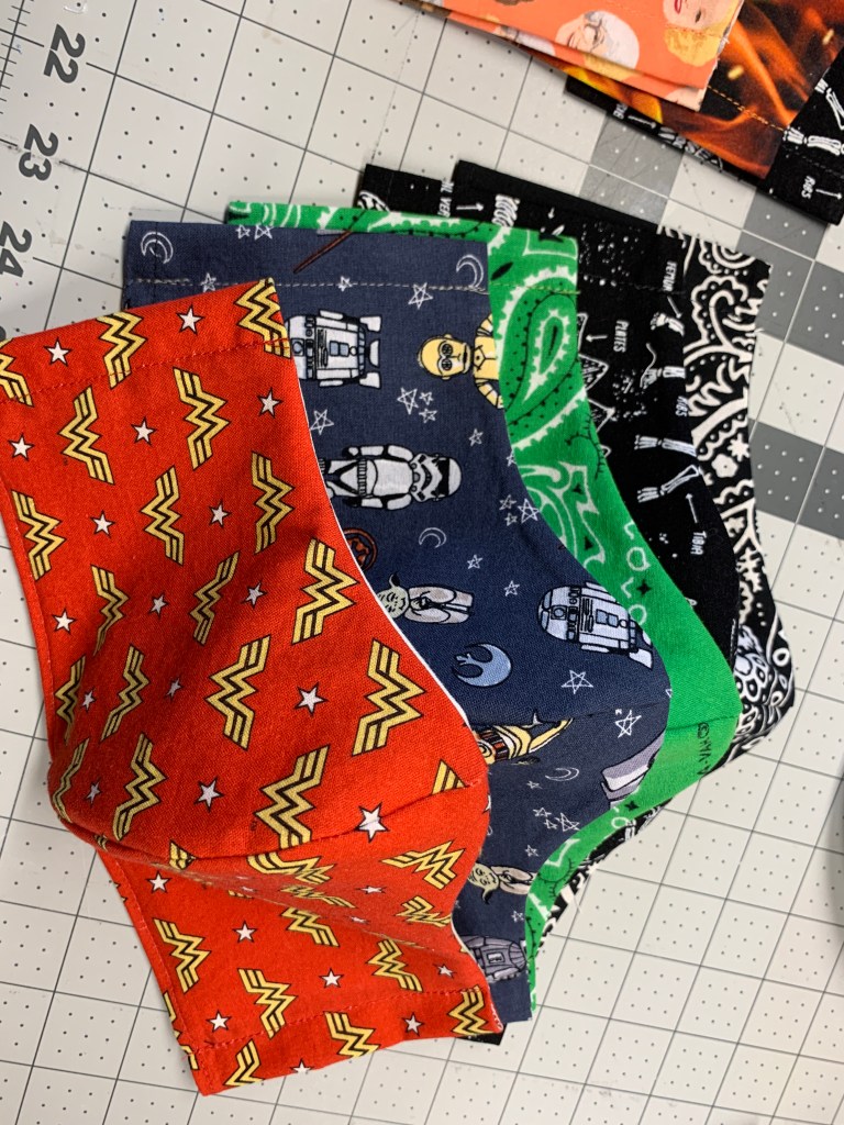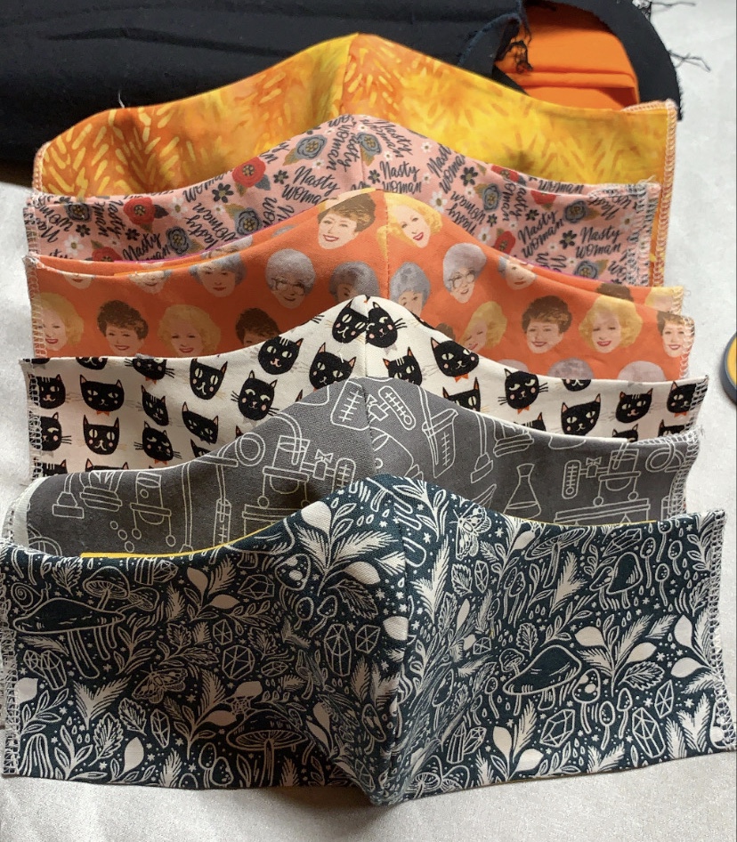 Masks are pocket style to accommodate additional fabric, a liner or a surgical mask.