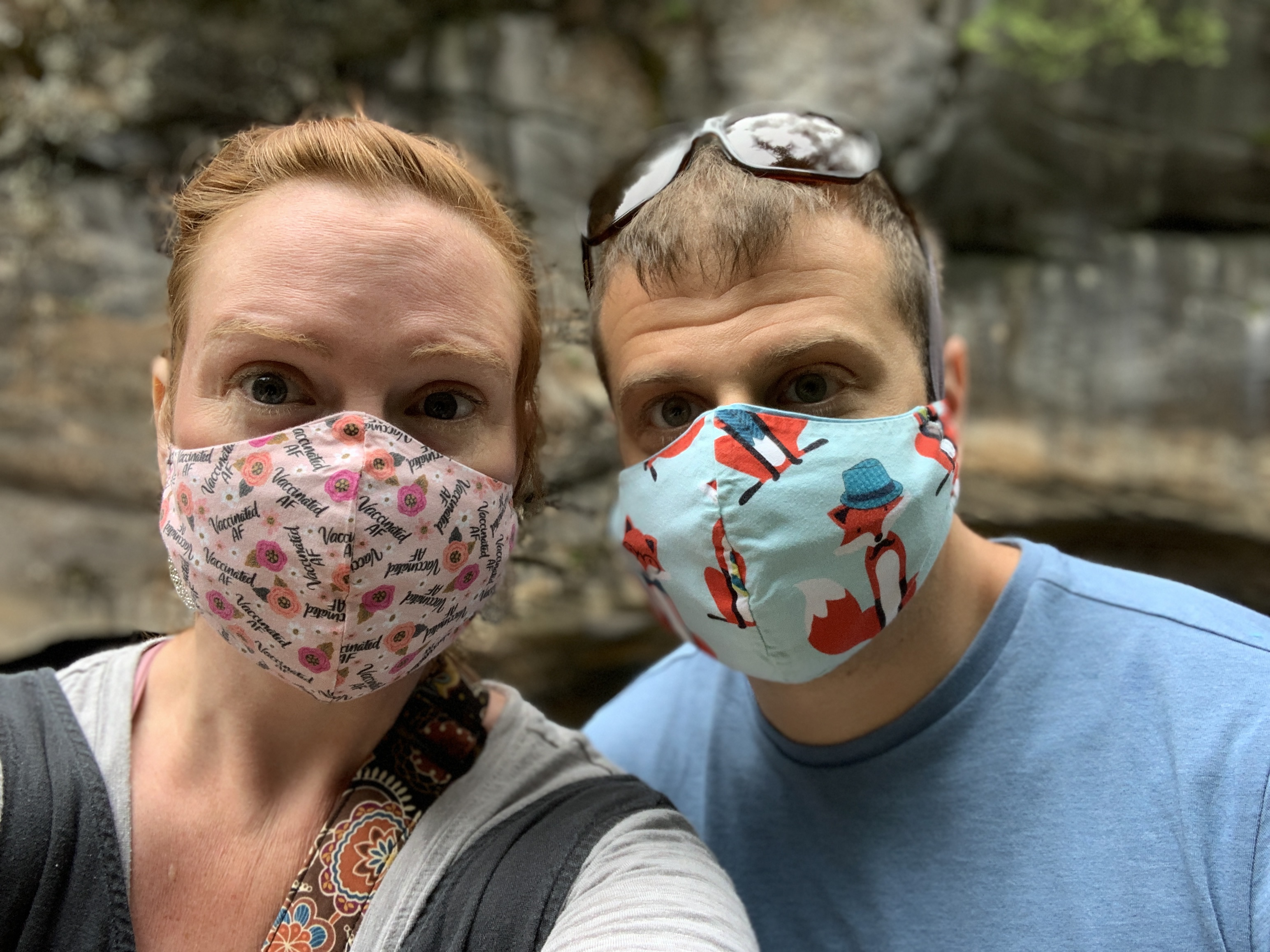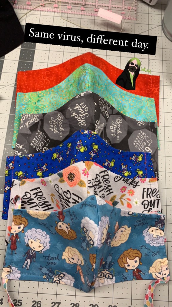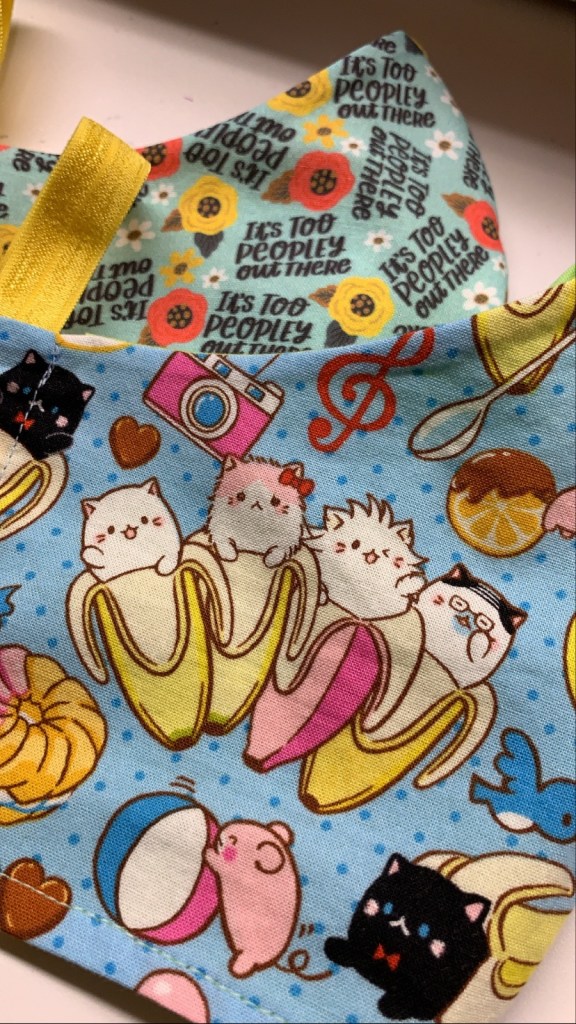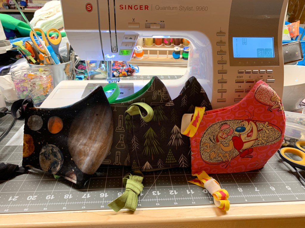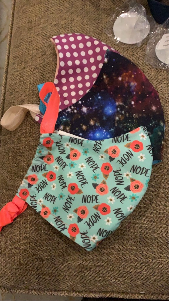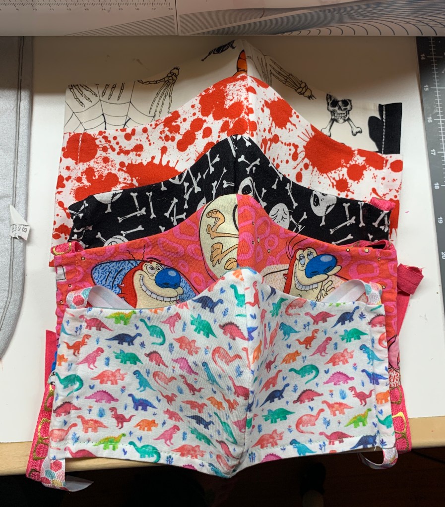 Masks are pocket style to accommodate additional fabric, a liner or a surgical mask.