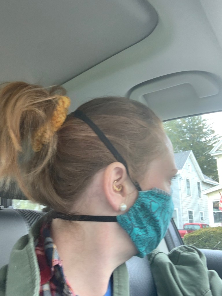 I use 5/8 elastic that wraps around your head and neck vs around your ears. Let me know if you need something else.
