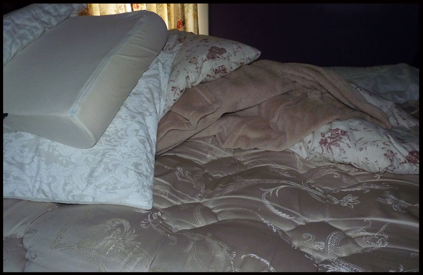 I didn’t think to get a pic of the spot, but this is my generally tidy and relaxing bed all rumpled up, until I get the cover and blanket out of the dryer.